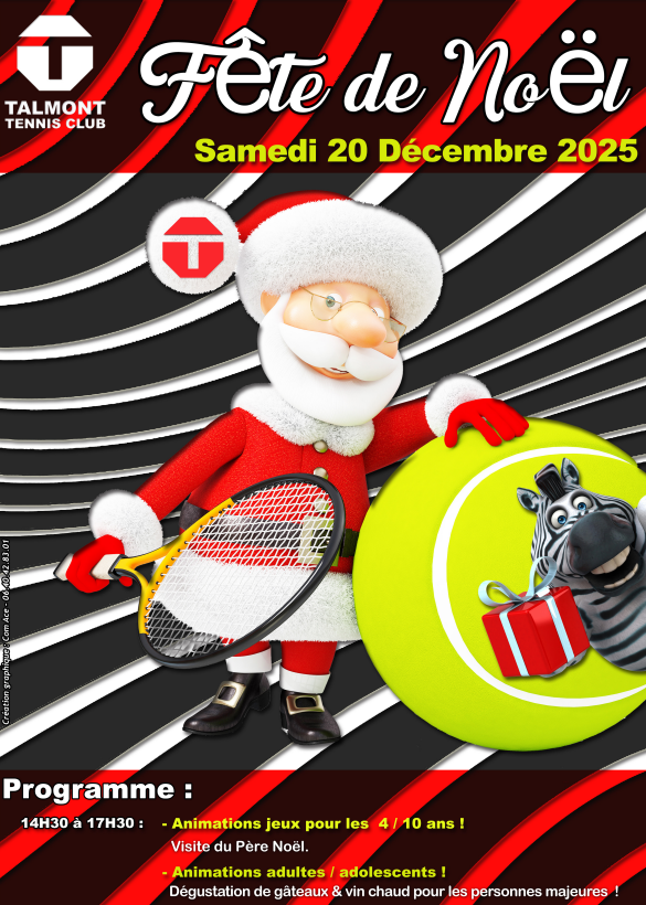 La fête de Noël du TTC aura lieu le samedi 20 décembre, de 14h30 à 17h30, au Talmont Tennis Club.